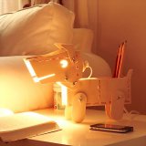 極客庫GeekCook小狗臺燈(可調(diào)光) 臥室床頭燈 創(chuàng)意燈 木質(zhì)筆筒,多功能臺燈 可調(diào)光可做筆筒的燈,見過如此心愛的原味臺