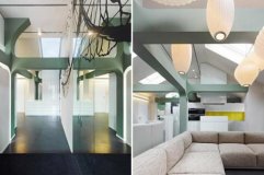 這個閣樓里住著一個年輕的家庭。公寓客廳寬敞,與開敞式廚房聯(lián)系在一起。原有屋頂?shù)慕Y(jié)構(gòu)被裝飾成倒圓角的…
