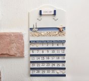 掛歷牌創(chuàng)意壁飾木質(zhì)風(fēng)景日歷牌萬(wàn)年歷地中海DIY定做,藍(lán)色與白色是典型的海洋風(fēng)格色彩搭配,浩瀚蔚藍(lán)的大海和純潔干