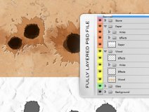 彈孔PSD在高分辨率的圖形設(shè)計(jì)。我們已經(jīng)創(chuàng)建了4個(gè)彈孔,木材,紙張,玻璃和石材的樣式。 …