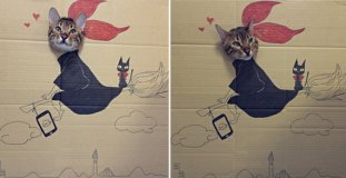 這是來(lái)自@雑炊村要擴(kuò)建微博博主很有創(chuàng)意的圖片,把他家的喵星人和紙版畫相結(jié)合推出這一幅幅…