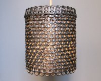 又是一個友好生態(tài)的環(huán)保作品,設(shè)計師將數(shù)百個汽水罐的易拉環(huán)收集了起來,進(jìn)行拼接組成這個燈罩,特別的同…