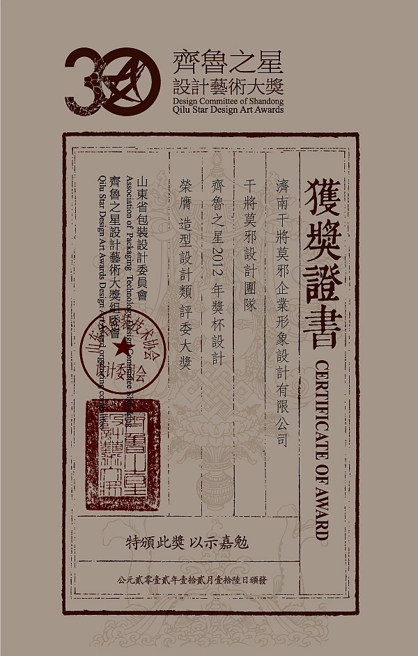 『齊魯之星』設(shè)計藝術(shù)大獎評選是由山東省包協(xié)設(shè)計委員會主辦的山東省設(shè)計領(lǐng)域最具規(guī)?;c影響力的權(quán)威評選活動。自1982年首屆山東省包裝裝潢設(shè)計評選到第九屆『齊魯之星』設(shè)計大獎評選至今,走過了整整三十年的歷程。她凝聚了山東省廣大設(shè)計師及藝術(shù)院校師生的創(chuàng)意設(shè)計精華,成為山東省設(shè)計領(lǐng)域交流的平臺,成為山東省藝術(shù)設(shè)計行業(yè)更新傳達展示創(chuàng)新先進設(shè)計理念的指導性賽事活動。