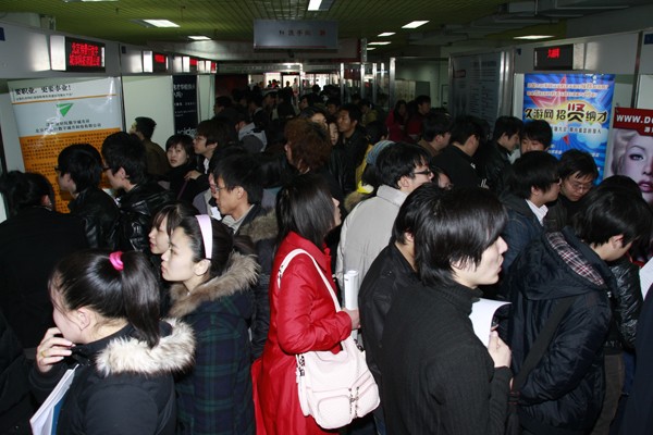 招聘會(huì)現(xiàn)場(chǎng)人頭攢動(dòng),場(chǎng)面火爆
