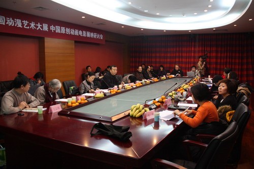 為了總結(jié)本次動(dòng)漫大展的展映活動(dòng),就動(dòng)畫電影的發(fā)展現(xiàn)狀及未來趨勢進(jìn)行研討,針對當(dāng)前動(dòng)畫電影的制作及商業(yè)發(fā)行環(huán)節(jié)的相關(guān)產(chǎn)業(yè)發(fā)展與行業(yè)專家進(jìn)行交流討論,文化部聯(lián)合十部委于12月11日在北京電影學(xué)院舉辦首屆中國動(dòng)漫藝術(shù)大展中國原創(chuàng)動(dòng)漫展映研討會(huì)。本次研討會(huì)主要針對六大問題展開討論:1、中國動(dòng)畫學(xué)派的形成及現(xiàn)實(shí)意義;2、如何傳承中國動(dòng)畫文化;3、就展映作品談?wù)剟?dòng)畫片的商業(yè)性與藝術(shù)性二者之間的關(guān)系;4、建立中國動(dòng)畫理論研究體系的必要性;5、展映活動(dòng)如何推進(jìn)中國原創(chuàng)動(dòng)畫的自信心;6、動(dòng)畫的受眾口味需要培養(yǎng)。