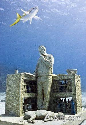 墨西哥正在坎昆附近的加勒比海岸建立一個水下雕塑博物館,這個博物館將是世界上最大的水下博物館,圖為雕塑作品《魚眼的世界》。