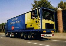 現(xiàn)在國(guó)外越來(lái)越多的商家把平面廣告做到卡車上,讓創(chuàng)意流動(dòng)起來(lái)。強(qiáng)烈的視覺(jué)沖擊力牢牢吸引單調(diào)的路途上的行人