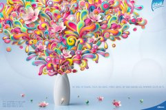 佳麗空氣清新劑的一組5篇廣告,精彩之處在于其華美無比的花朵圖案設(shè)計(jì),噴涌而出的絢爛,讓人感受到五彩繽紛的