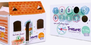 應(yīng)該沒有人不喜歡這樣富有童趣和實(shí)用性的包裝設(shè)計(jì)。設(shè)計(jì)師在尿布包裝盒上大膽地描繪各種有趣的圖案,小朋友可