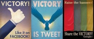近日,設(shè)計(jì)師 Aaron Wood 制作了一組以戰(zhàn)爭(zhēng)宣傳為主題的關(guān)于 Twitter,Google+,F(xiàn)acebook 的海報(bào),充分地表現(xiàn)了日趨緊張的