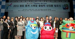5月12日上午,特奧會(huì)組委會(huì)在韓國(guó)首爾時(shí)代廣場(chǎng)發(fā)布2013年特殊奧林匹克冬季運(yùn)動(dòng)會(huì)會(huì)徽與吉祥