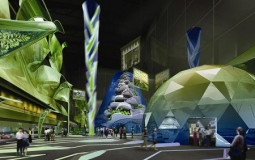 上海世博會主題館的未來城市展區(qū)將展出未來城市的生活 有著太陽能葉片的綠色植物,可以旋