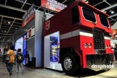 香港動(dòng)漫節(jié)正在會展中心舉行,其中一個(gè)攤位尤其搶眼,依據(jù)變形金剛造型的貨柜車,高五米